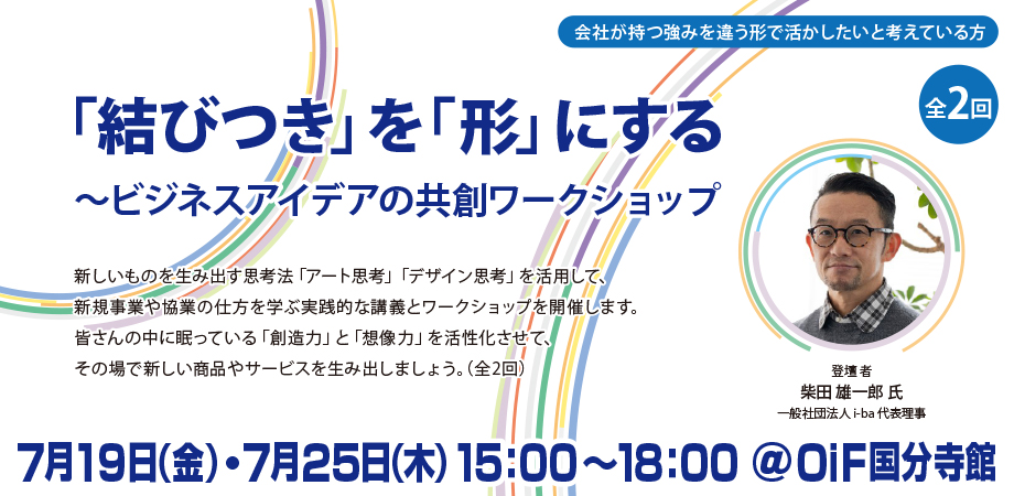 新しいものを生み出す思考法「アート思考」や「デザイン思考」を活用して、新規事業や他業種との協業の仕方を学ぶ実践的な講義とワークショップ。