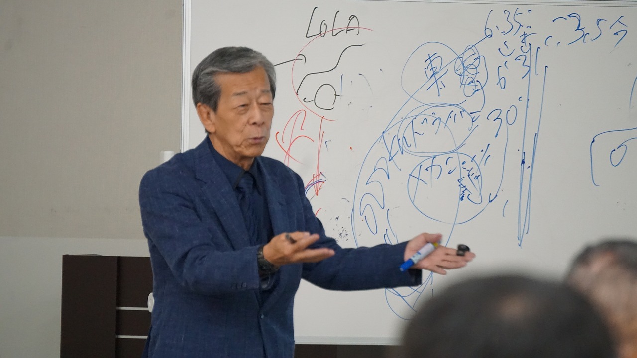 その1周年記念講演として、日産R35GT-Rのプロジェクト責任者兼開発責任者で、"ミスターGT-R"こと水野和敏氏がご登壇。