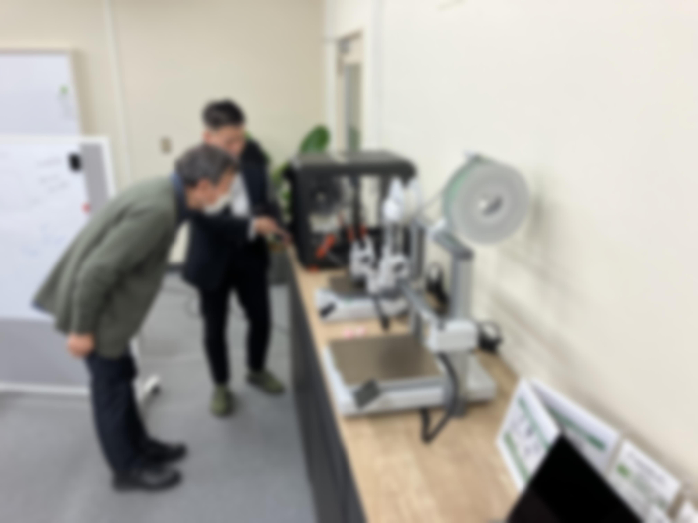 3Ⅾプリンターは印刷完了まで30分ほどかかるタイプもあり、その間でファシリテーターから3Ⅾプリントが活用されている「フードプリンター」「義足」「住宅」など実用化された例が紹介されました。