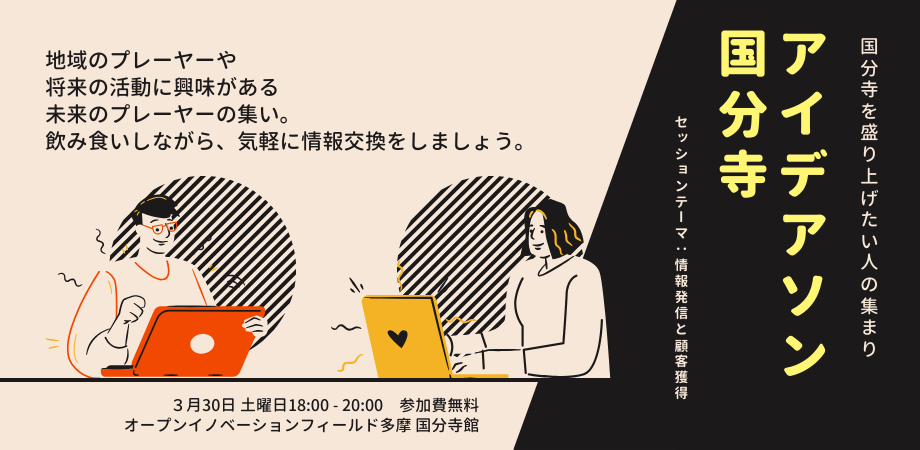 【参加費無料】3/30 地域活性 アイデアソン国分寺 ~地域事業者とOiF国分寺館との懇親会~