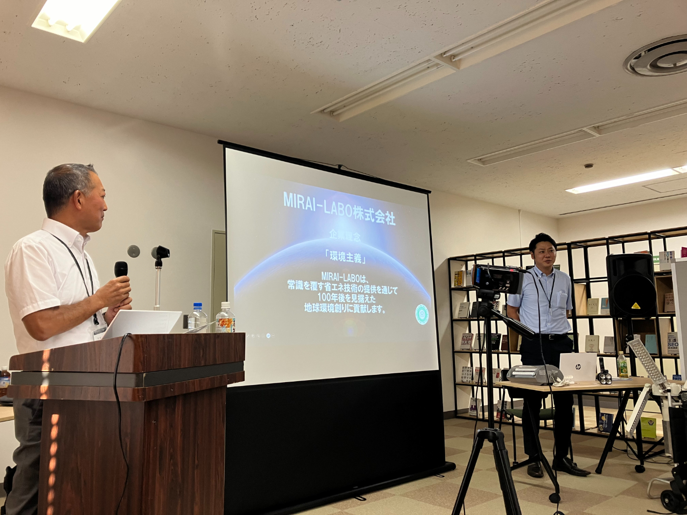 MIRAI-LABO株式会社 代表取締役社長 平塚 利男 氏をお招きし、100年先を見据えて取り組もうと考えたきっかけ、リパーパス製品の着想と開発過程、中小企業として社会的課題に取り組む意義についてお話しいただきました。