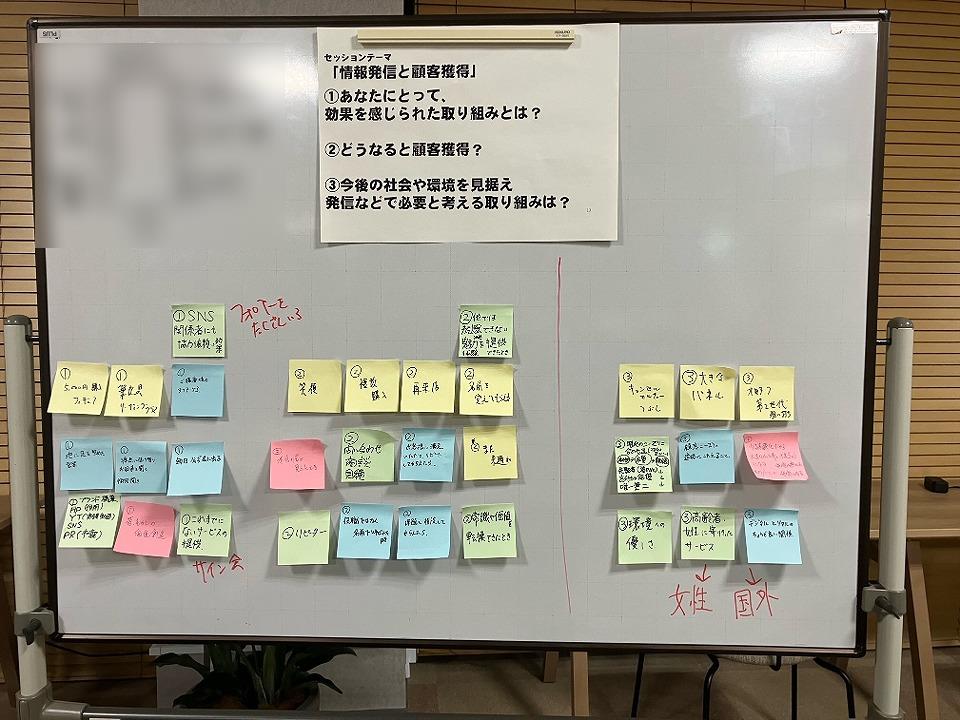 顧客のSNSによる情報発信を促進する方法を議論。定期的な発信や口コミ活用がブランド力向上に寄与すると結論づけられました。