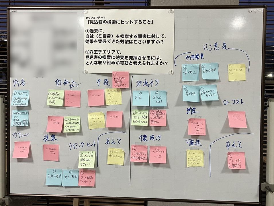 見込客の検索行動への対策がテーマとなり、特異な価値の投稿や八王子に関連するキーワードを活用した検索対策が効果的とされました。