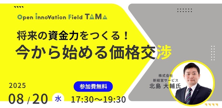8月20日(水)、オープンイノベーションフィールド多摩八王子館にて、「将来の資金力をつくる!今から始める価格交渉」が開催されました。